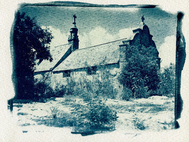Let me leave you with a couple of prints. The first one is a cyanotype of an abandoned church in the Bahamas printed on some watercolor paper:
