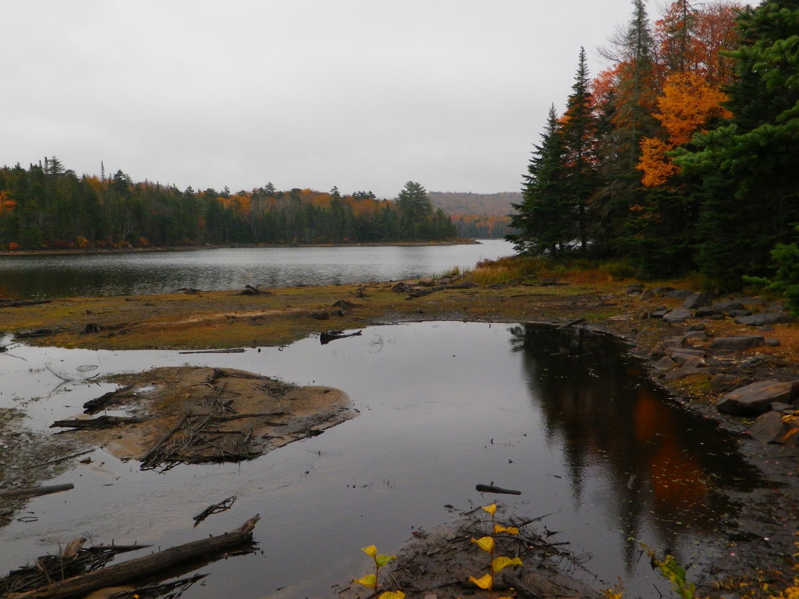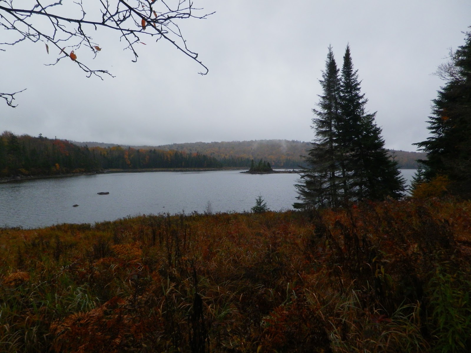Fetch. I complained at every uphill, and Greg complained at every downhill, because that's what put the most stress on his knee. So it was pretty much non-stop complaining. At least at first. At certain points, it appeared as if the trail had been cut by a sadist. Once, we hiked up a big hill away from the lake to a lean-to, and then the trail immediately turned and went back down to the lake. Completely unnecessary. It could have been a straight path with an intersecting trail to the lean-to, but no. We blamed it on some mythical 25 year old bastard of a trail designer who thought it would be funny to route the trail that way. We could picture him. He was one of those guys who was in great shape and had expensive ultra-light equipment and hiked in shorts, even in the winter. He had a GoPro and slept in a fancy hammock. His name was Chad. We hated Chad.