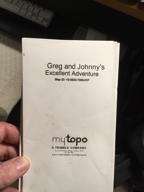 It was a thing of beauty. Waterproof, folded, and it had a matte finish so you could write on it. Except for the unfortunate placement of the UTM grid that makes it look like we'd be passing Butthead Pond, it was perfect.