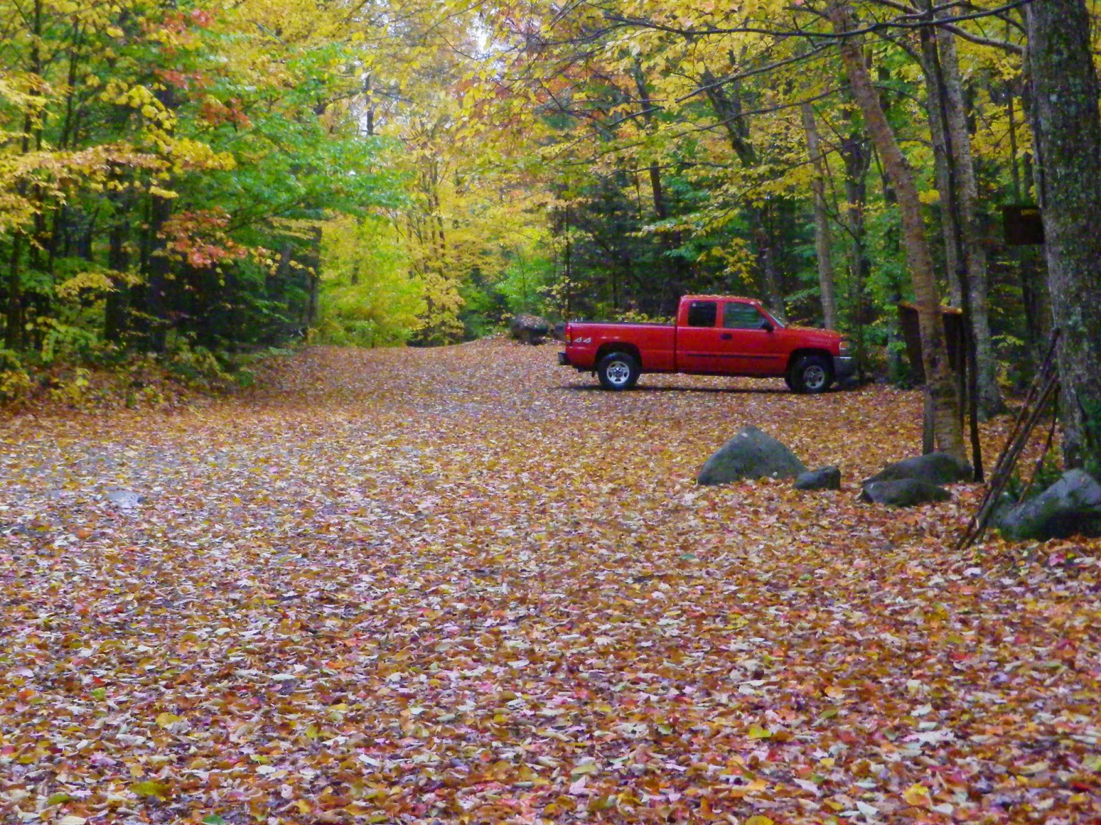 We had a map, a compass, a GPS, four days off, and a dream. Due to circumstances beyond our control (wives) we weren't able to leave when we had planned, (wives) so the trip got pushed to October, which meant we had to worry about two things: Hunting season and cold, wet weather. It was touch and go for a while as to whether we'd even be able to do it (wives), but at the last minute things worked out and we headed off early one mid-October Sunday morning. I told Greg not to wear his brown suede coat and white gloves, and luckily he took my advice. The good thing about doing this during the week is that we'd pretty much be the only people in the woods. The bad thing, of course, was *also* that we'd be the only people in the woods.